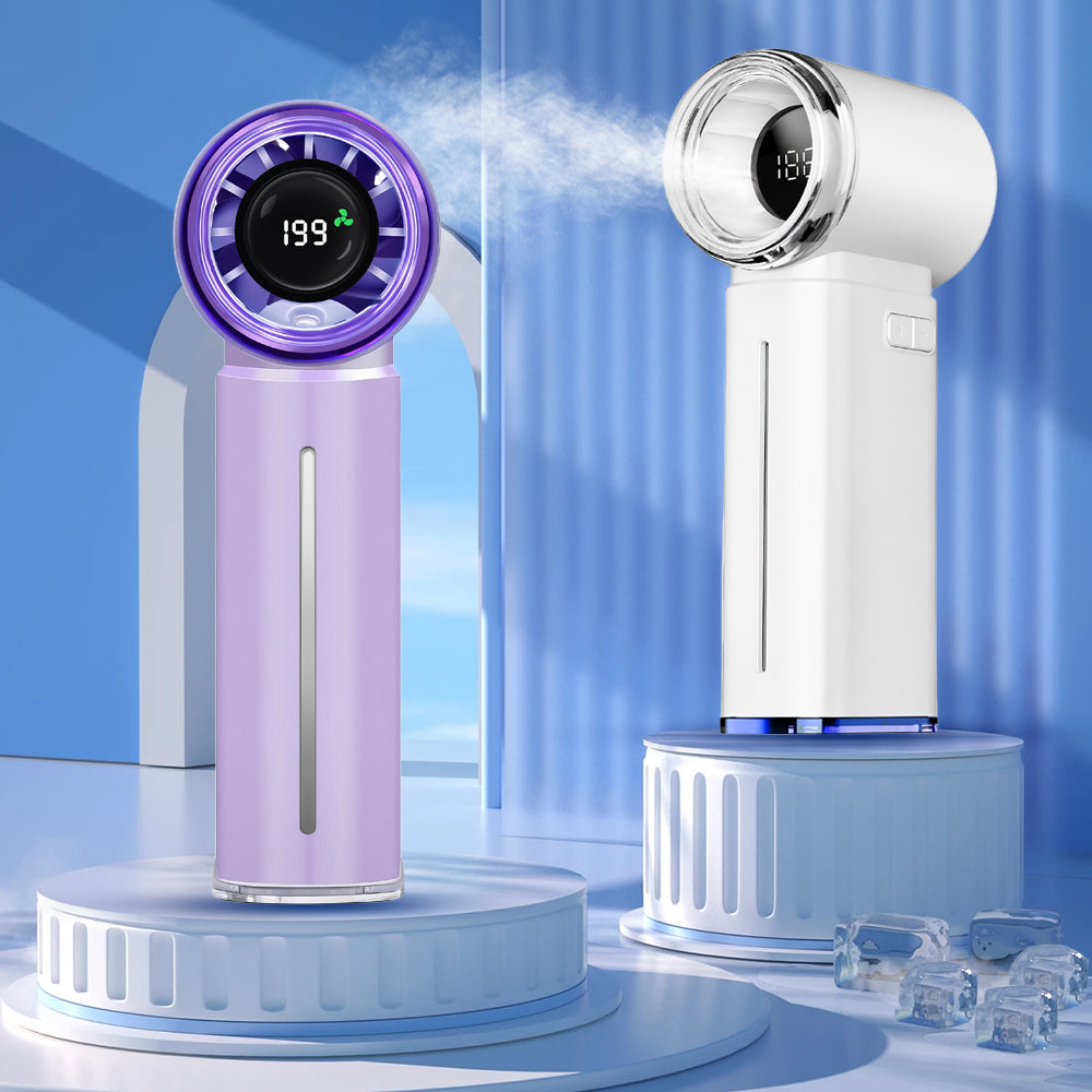 3-in-1 digital misting fan: Handheld + desk + makeup humidifier.